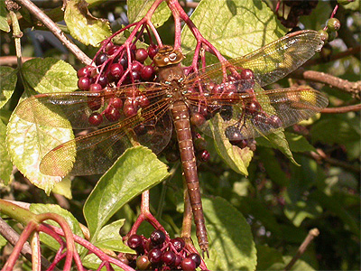 Pasture Common pool. Most species are generally tied to these two sites. The larger hawkers and the darters however, can be met with virtually anywhere, even well away from the nearest water. Status of the area's Odonata species 2007 With it's perfect habitat, species' quick to become established at Eakring Flash were Black-tailed Skimmer and the Emperor Dragonfly. |