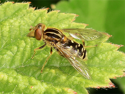 An extremely scarce hoverfly in Nottinghamshire, with very few records. Being a species of typically wet sites, with well vegetated ponds and ditches, most of the county's records have come from Attenborough NR where it has occurred several times since the 1960's. The example showed below, was found and photographed at Colwick Hall by Darren Matthews in May 2018. Our thanks go to Darren, who very kindly allowed us to use his photograph. | ||