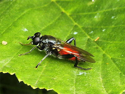 This impressive Hoverfliy, was found and photographed by Pauline Bradford at Dyscarr Wood in the north of the county in late June 2016. Certainly uncommon in Nottinghamshire with very few recent records, Brachpalpoides lentus is a large and very distinctive species of woodlands. Apart from Dyscarr Wood, the only other records we know of, are from Attenborough NR and Sherwood Forest. Our thanks go to Pauline, who has allowed us to use her photograph to illustrate this species.. | ||