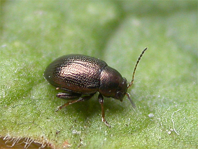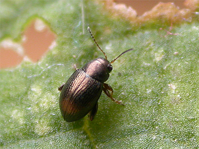 | A small leaf beetle, with a fairly widespread distribution across Nottinghamshire, who's distribution is probably only limited by lack of recorder coverage, rather than being uncommon. Most of the known county records are from western areas of the county, especially on some former pit tops such as Pinxton and Annesley-Bentinck Collieries. | ||