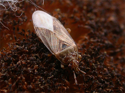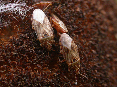 Despite the lack of records, Chilacis typhae is a very common Lygaeid Bug across wetland sites in Nottinghamshire. It is very easily found on the heads of Bulrush and is usually present in large numbers. There are several generations of adults throughout the year. | ||