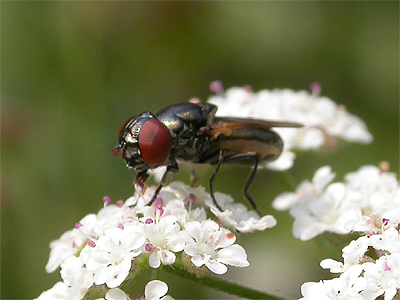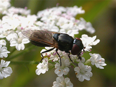 A small, often lively and difficult to approach Hoverfly. Chrysogaster cemiteriorum is usually found on the flowers of various Umbellifers and is made distinctive by the orange base to the wings. There are similar-looking species though, so any identification must be made with care. Its Nottinghamshire stronghold, seems to be in the Sherwood Forest/Clumber Park areas, but we also have recent records from Warsop Main Pit Top. | ||