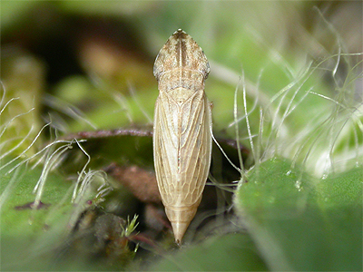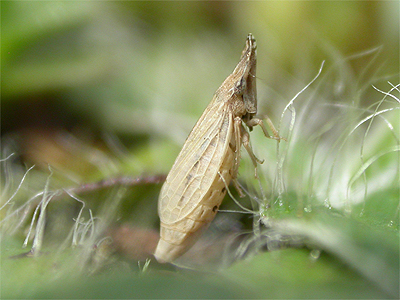Although this species is widespread over much of the UK, Eupelix cuspidata is by no means regarded as being common. A characteristic species of dry, grassy areas, we found this one among the sparse grass and stony ground of a former railway line at Warsop Main Pit Top in June 2016. This is one Leafhopper (Cicadellidae) which poses no real identification problems. | ||