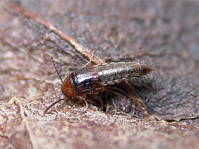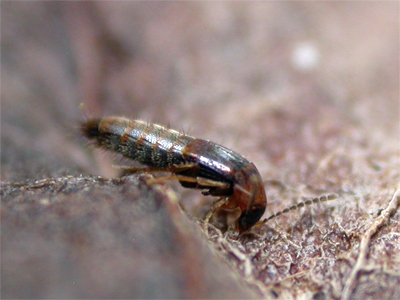 | One of many Staphylinidae of this particularly long, narrow shape. Somewhat similar to a stretched Tachyporus, this was a species we'd never encountered before, but regular sorting of leaf litter from Market Warsop cemetery and from old straw bales at Sherwood Forest CP, produced three individuals, which were quite recognisable on shape alone at first glance. The specimen below was from a wood chippings sample, taken by Nick and Samantha Brownley, from Sherwood Forest CP in late December 2026 | ||