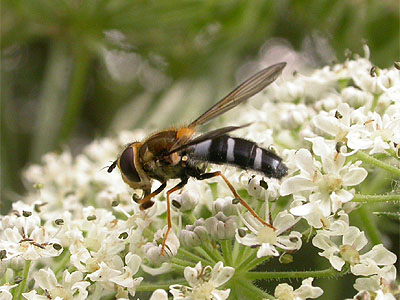 hoverflies, nectaring on the flowers of Hogweed in Warsop