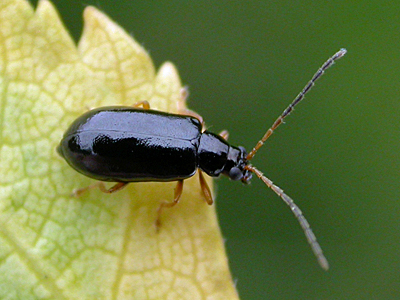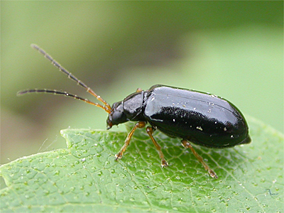 TA beetle with a predominantly western distribution in the UK and along the south coast up to Norfolk. There are relatively few records from most Midlands counties and just three records (as far as have been published) from Nottinghamshire. Just one of the three Nottinghamshire records is modern, coming from Rainworth Heath NR in 2003 and where the beetle is still to be found by beating scrub Birch growing in a boggy section of heathland.. | ||