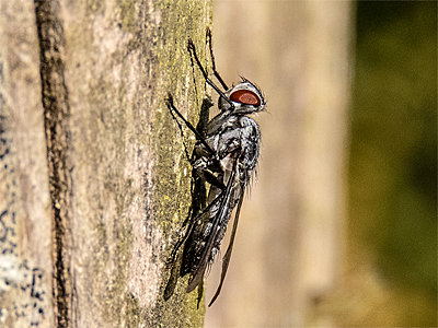 Netherfield Lagoons by Peter Smith in July 2021. Flies of the Genus Macronychia, belong to the Sarcophagidae Family and are reasonably distinctive to separate to Genus level by the dark trianglular patterning on the abdominal tergites. Grateful thanks go to Peter, for allowing the use of his photographs to illustrate this species. |