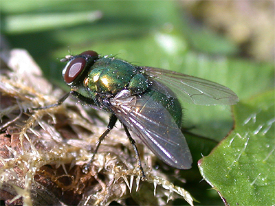 Doubtless a severely under-recorded species in Nottinghamshire, not helped by the fact that Neomyia viridescens is extremely similar to Neomyia cornicina. Then, to make identification even more difficult, both Neomyias (Muscidae) are visually very similar to the well known Lucilia 'Greenbottles' (Calliphoridae) despite them belonging to a different families. Neomyia viridescens frequently visits flowers and is less inclined to occur in urban gardens. | ||
