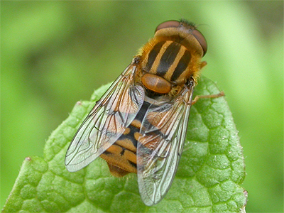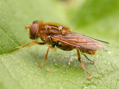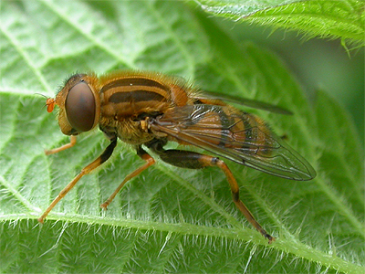 One of a group of very similar hoverflies, P. frutetorum is a very common species in the Eakring area. It favours areas where Bulrush grows, but does wander away from breeding sites and occurs in Lound Wood and Eakring Meadows at Eakring. Elsewhere, it is regular at many other wetland sites over a wide range. | ||