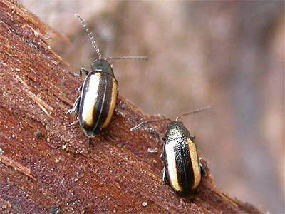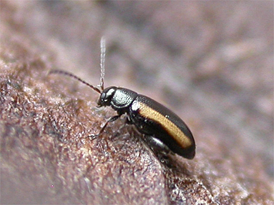 | Probably under recorded to a certain degree in Nottinghamshire and there are the customary 'several similar species' to ensure caution with identification. Found on various Brassicas and can be a pest of certain crops. The ones illustrated (upper photographs) were found on Horse Radish Amoracia rusticana at Wellow Dam in early July 2021, while the ones in the lower photographs, turned up in a leaf litter sample from Lowdham Church in January 2026. Phyllotreta nemorum has a rather patchy distribution over southern parts of the UK. | ||
