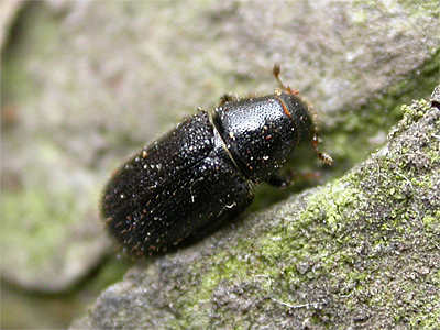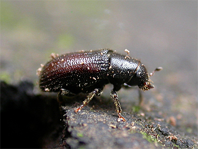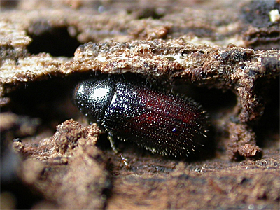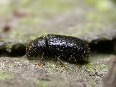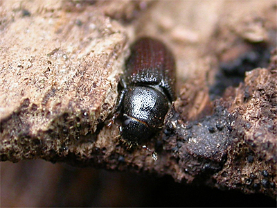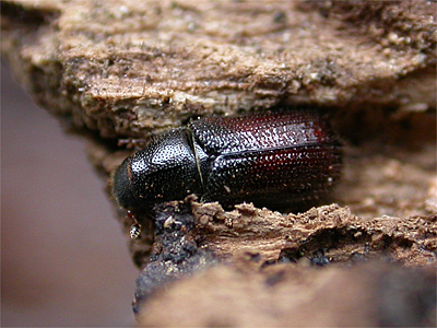 Almost certainly under-recorded in Nottinghamshire and personally thought to be widespread in the forested areas of the county. The larval feeding signs and exit holes on standing old trees and the damage caused to young Pines, are probably more commonly seen than the number of times the adult beetle has been recorded to date. There are recent records from Centre Parcs, Budby South Forest and Clumber Park. Grateful thanks go to Nick and Samantha Brownley, who provided the specimens below. | ||