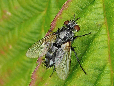 Voria ruralis is a dark grey Tachinid fly and a larval parasite of several species of Plusiinae moths including Silver Y (Autographa gamma) and Spectacle (Abrostola tripartita). It has a patchy, but widespread distribution covering most the the southern counties of the UK and in Nottinghamshire was fairly well recorded historically, although there seem to be few recent records. The fly shown lower right was recorded and photographed at Dyscarr Wood, by Pauline Bradford in September 2015. | ||
