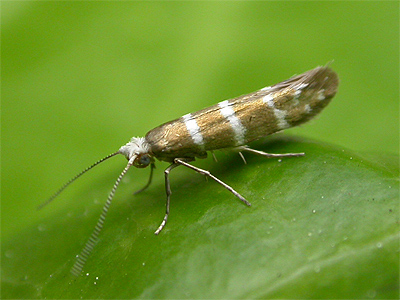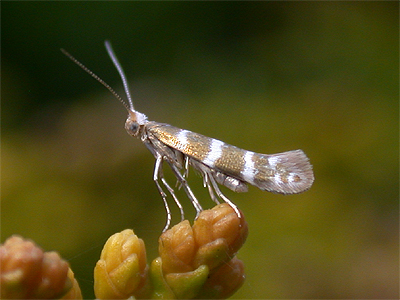 Status .....Seems to be quite common as far north as Worksop, being found in gardens and parks where numbers of this moth can often be found flying around ornamental conifers. Probably now very widespread in both urban and suburban habitats. | ||