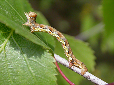 Full-grown larva. Photographed on Birch Betula pendula, Clumber Park May
