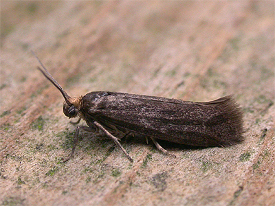 Status ..... Once regarded as a dark form of Prays fraxinella, Prays ruficeps tends to fly slightly later in the year, although this is no guarantee of identification. P. ruficeps shows an all dark forewing, with no darker markings visible and a brown/orange head. Commonly recorded at MV light at Eakring, many old Eakring records of the dark form of P. fraxinella, are now thought to have related to P. ruficeps. | ||