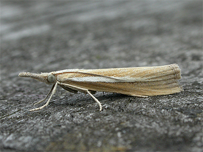 | The Crambidae covers a large number of moths, of which the Crambinae make up a good percentage. They are commonly referred to as Grass Veneers and even more often lumped together by moth trappers as 'Crambids'. They are slim moths in appearance, light brown or straw coloured, with narrow forewings and slightly larger hind wings. Most species typically rest head down on grass stems, from where they are readily disturbed during the day. | ||||