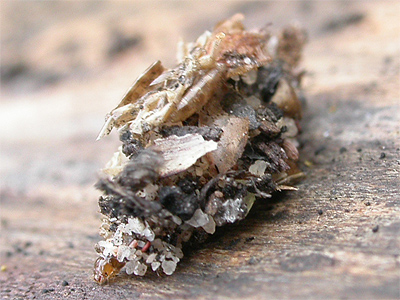 Psyche casta is one of the easiest cases to find and is common in the Sherwood Forest area. Only the male is fully winged. There are currently only two Eakring records. With a case length of between 8-12mm, it is distinctive enough to be spotted and identified with confidence. Cases can regularly be found on low-growing plants such as Bramble, coarse Grasses and tree trunks during the late Spring and Summer months. | ||