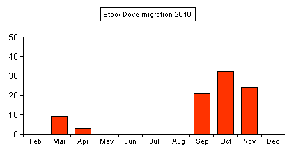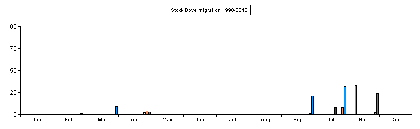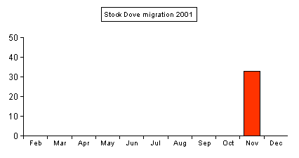 Having a small but widespread resident population making daily feeding movements, means that Stock Dove is another difficult migrant to detect. Certainly, birds do move south with large Wood Pigeon flocks in October and November, but because of the difficulties in determining genuine migrants, no consistant counts have ever been made here. | |||||||||||||||||||||||||||||||||||||||||||||||||||||||||||||||||||||||||||||||||||||||||||||||||||||||||||||||||||||||||||||||||||||||||||||||||||||||||||||||||||||||||||||||||||||||||||||||||||||||||||||||||||||||||||||||||