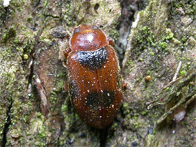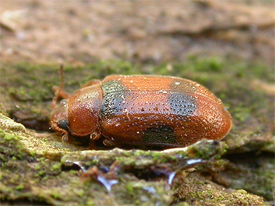 Coccidula scutellata is one of the less recognisable Ladybirds. Several of these were found within the hollow stems of Bulrush at Eakring Flash in early March 2013, where it had not been recorded during similar seraches for other beetles in previous years, so may well be another recent colonist of the site. Length around 2.5-3mm. | ||