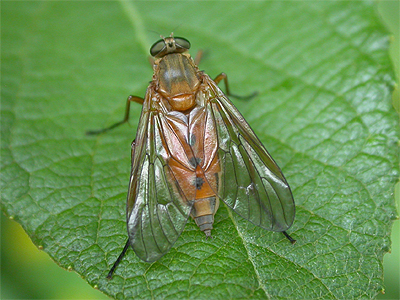 A widespread Snipe Fly across most of the UK, Rhagio tringarius is one of the easier species to identify. Obviously orange in colour, with well spaced triangular marks on the abdomen, this fly can be found in well vegetated sites. Recorded at Bevercotes Pit Wood in July 2013. | ||