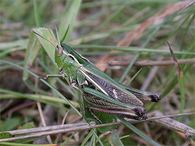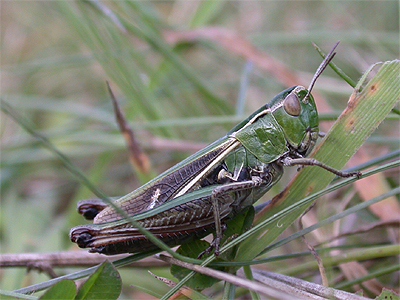 Severn estuary. Stripe-winged Grasshopper is a brightly