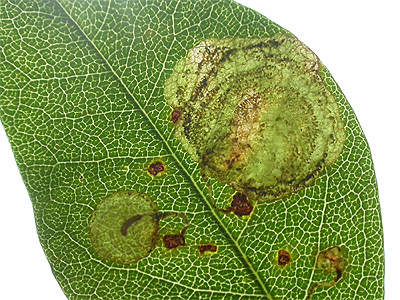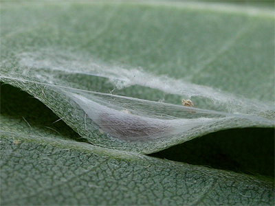 Leaf mines photographed at Nettleworth Manor July 2010 | Pupal 'hammock' photographed at Nettleworth Manor July 2010 | |