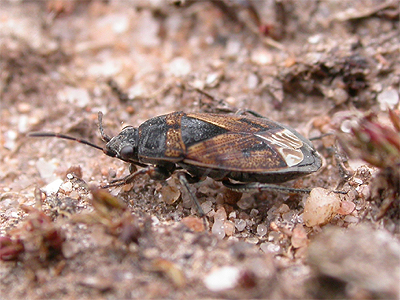 A common ground bug, but there are similar species which make identification quite difficult. These Trapezonotus desertus were found on heathland sites at Sherwood Forest CP in May 2010 and at Rainworth Heath in June 2014. T. desertus probably occurs throughout most of the Sherwood NNR area. | ||