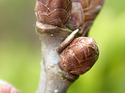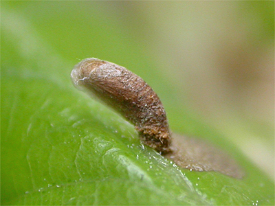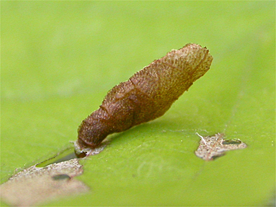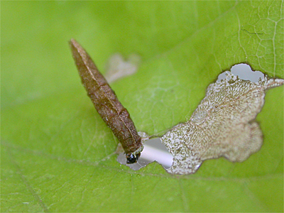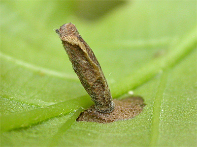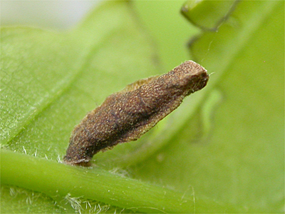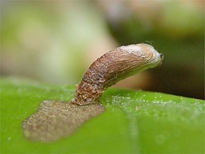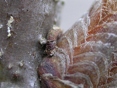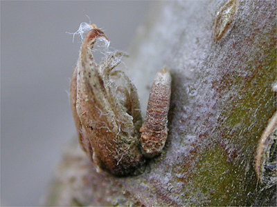 of C. lutipennella overwinters fixed in the axil of a bud (as