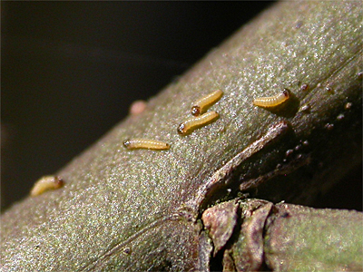 Euonymus europaeus grows. The larvae are present annually in