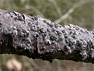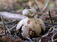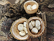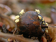 soil or wood. Spores emerging as clouds of dust through a small aperture