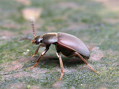 | Catops tristis is one of 12 very similar Catops species, which belong to the Leiodidae family. It is a group that are very difficult to separate. Measuring just 4.5mm in length, this one was photographed at Sherwood Forest in November 2008 and they are common in carrion. Several of these were under a dead Longhorn calf, found in the forest during a Coleoptera survey in October | ||