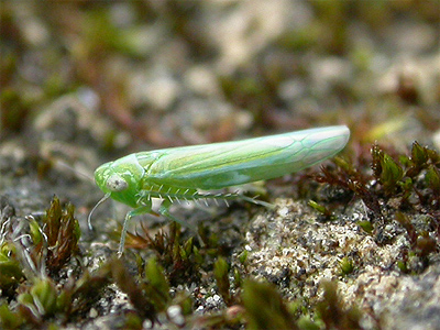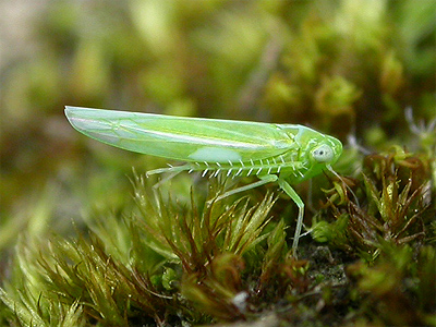 Empoasca vitis is a very common froghopper found throughout the year and measures around 3-4mm in length. During the Summer, it is found on a range of shrubs and plants, but over the Winter, it can be found on evergreen shrubs and is common in gardens. Gardening on mild days in from late January onwards, will often disturb this species into making short flights. This one was found at Market Warsop in early February 2011. | ||
