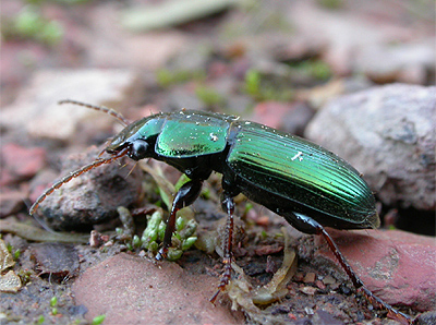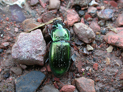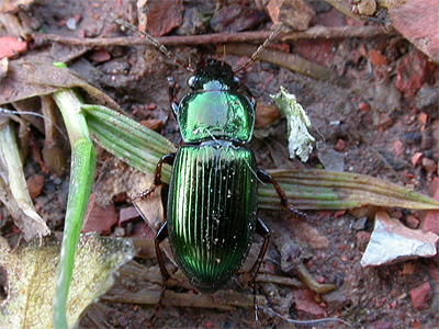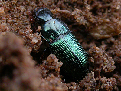 One of several similar species, which are initially difficult to separate apart from this one. Harpalus affinis is distinguishable by it's pubescence around the elytra and often striking metallic copper, purple or green colouration. It measures around 11-12mm in length, this one was found under a moss covered log on the edge of Sherwood Forest in October 2008. | ||