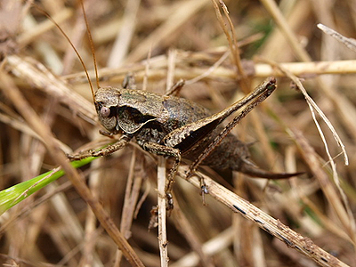 Bush Cricket in Nottinghamshire Following an initial email we recieved on 25/09/13 and following a series of emails with confirmation photographs, we have been able to confrim that Dark Bush Cricket has been recorded in Nottinghamshire for the first time since 2003. The last known records came from the Bingham Linear Park and a thorough search of the area by Roy Frost in 2011 proved fruitless. So this recent discovery by Weston couple Louise and Alastair Gordon is extremely important on a county level. They first recorded Dark Bush Cricket there in 2011 and also have Speckled Bush Cricket present. Louise and Alastair have provided us with 10 figure grid references for two sites (one of which is their garden) which we have passed on to Roy Frost, the Notts and Derbys Orthoptera recorder and the accompanying photograph. |