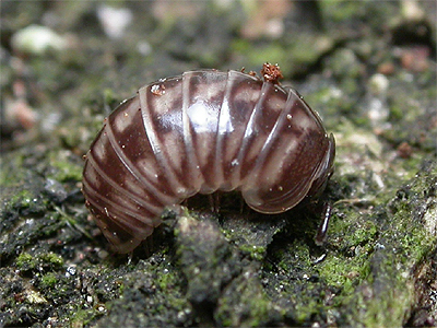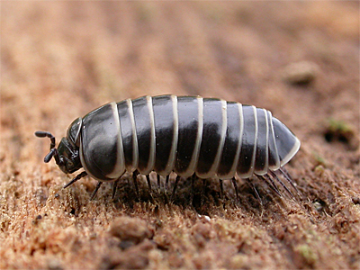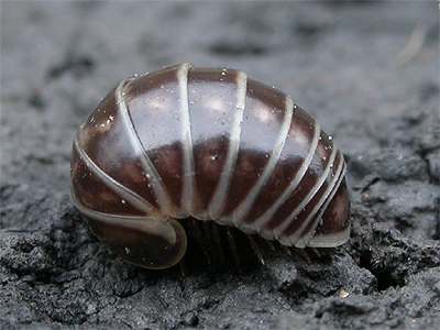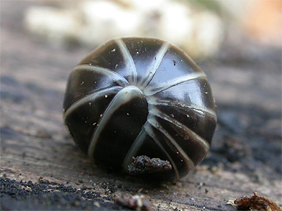 Immensely common around Sherwood Forest, but also in all wooded areas, where it can be found during the day under logs etc. Pill Millipedes are named after their ability to roll into a tight ball for protection against predators. Most specimens are black, but occasionally more attractively marked examples are found. | ||