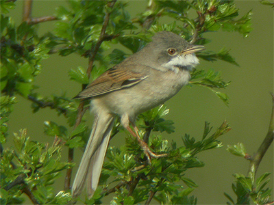 Very quiet again, but good numbers of Whitethroat arrived (at least 12 this morning) with some seen to continue off north. The male Grasshopper Warbler called again at Penny Pasture Common. | |||