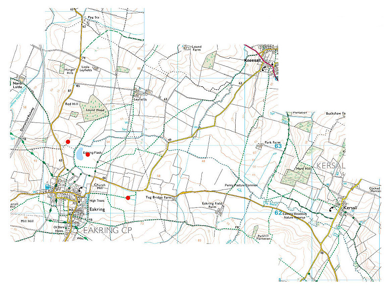 The number of breeding pairs has always remained low and the most regularly used sites have been Eakring Flash and Eakring Field Farm, with a pair breeding once at Church Hill in 1998. | |