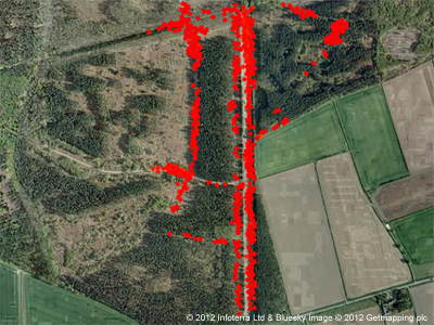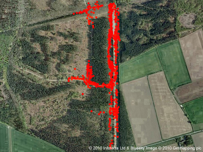 years. It is a shame that this beetle is not widely accessible to many more people. Glow Worm walks organised by the rangers at the Sherwood Forest Visitor Centre prove so popular, the rangers tell us that they could organise a walk every week and it would be over-subscribed each time. There are not many insects that have that effect on the public, even the rarest of species. Although the Glow Worm population at Clipstone Old Quarter is currently doing very well, as shown in the aerial maps from 2010 (above) and 2012, the same does not apply to most of its Nottinghamshire range and surveying has already indicated that Glow Worms have disappeared from many known sites and seemingly at quite a rate. |