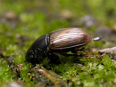 | This is a large species of Acrossus, found in Horse dung at Clipstone Old Quarter in mid-April 2009. Acrossus luridus is quite distinctive through size and elytral patterning alone, with a length of 8mm in the one photographed. This beetle was first recorded from the Sherwood Forest area in 2007, with this one representing only the second record for the reserve. | |||