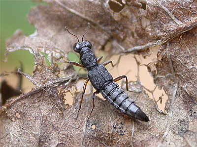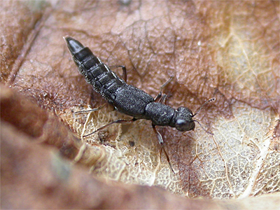 | Found amongst many invertebrates by grass tussock sampling on Budby South Forest in late March 2013, the sample contained several Stenus species. One species to turn up was Stenus providus, which is fairly widespread across the northern-half of Nottinghamshire, but should be found more widely. Like many other Rove Beetles, Stenus always make for excellent photographic subjects, despite their generally small size and at least will pause long enough for photographs. | ||