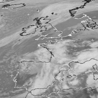 north-bound migrants There were two periods during the Spring, when migration was halted by bad weather. Both were related to low pressure systems and each centred over different European countries. The picture on the right, taken on April 11th 2002 by Nottingham University's Meteosat satellite, shows the low-pressure system situated over Spain and much of France, which was responsible for halting the progress of migrants between April 9th and 13th. The situation remained very similar for several days, either side of this date, but once gone, allowed good numbers of warblers and other migrants to reach the area from April 14th onwards. |