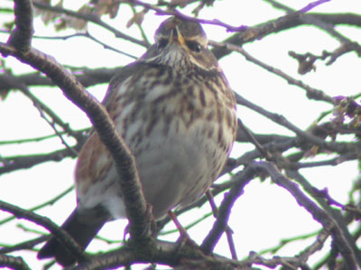 Autumn There was little remarkable to set this Autumn migration period aside from the others of previous years. Most species counts were quite unremarkable, though warblers were noted in increased numbers and Redwings provided the first large-scale passage through the area with two four-figure counts on consecutive dates. Most of the expected waders turned up, with Green Sandpiper and Curlew producing records during late June and early July. Greenshank remained scarce once more, due to the continuing lack of shoreline and species like Dunlin and Ringed Plover were typically brief. The Ringed Plover record was however, the first since 1998. A Ruff was with Lapwings in fields near Eakring Flash on one date, with Whimbrel again producing the expected several records. For the first time, arrivals of migrants on the east coast, failed to produce any inland sightings of the regular species here. A Redstart record at the end of August not coinciding with any such migrant fall. As mentioned in the opening paragraph, most visible migration totals were low, both daily and throughout the entire period. Unfortunately, some breaks in coverage resulted in the lowest totals ever recorded here. The first half of November being particularly affected. Autumn migration is long. From around the third week of June, several species begin to head south and among the most regular are Sand Martins. Birds moved through Eakring Flash on most days in late June, right through July. There were two noticable peaks in Sand Martin migration and most moved through on fine, sunny days in the last week of June. The rarest birds of the Autumn were a Honey Buzzard in the Hare Hill Wood area for over a week, a juvenile Garganey, another Autumn Grasshopper Warbler and a group of four Wood Lark which flew south over Eakring Flash on September 30th. There were poor showings of regular migrants such as Redstart, Wheatear and Whinchat. Two Stonechat records however, were quite typical of the area in recent years. Redwing migration during October and possible reasons creating the "corridor effect" As mentioned on the October bird news page, this year's main Redwing arrival occurred within a very small migratory "corridor", no more than a few hundred metres across. This corridor ran in an east/west direction, directly over and between Lound Wood and Little Leyfields farm. It did make for easier counting and these were the largest produced by migrant Redwings since recording here began and had been long overdue. Most Winter migrant arrivals occur on a broad scale. These are easily viewable from any single vantage point, and scanning with binoculars will further reveal such passage over more distant parts of the recording area. Such was the concentration of this passage, that even scanning points both north and south with binoculars away from the main route, revealed that less than 1% of Redwings recorded over both days, strayed away from this corridor. If traditional watch points had been used (which they were for certain periods to verify the corridor) then counts would have been vastly lower than those actually derived. |
