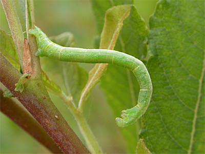 Full grown larva on Honeysuckle Lonicera