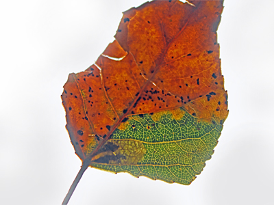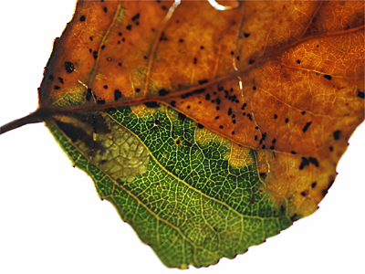 | Leaf mine on Black Poplar Populus nigra, photographed by Graham Beeley, Maun Valley Trail, Mansfield Woodhouse October 2025. | ||