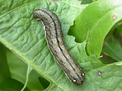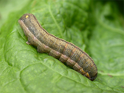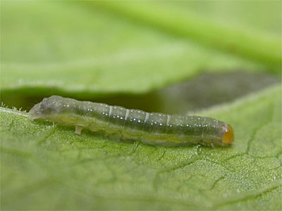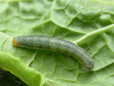 Final-instar larva. Photographed October 2025. Colouration varies from very light brown, to a very dark olive. | ||