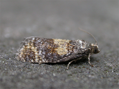 Status ..... This moth was first recorded in Kent in 1951 and it has since spread northwards through the UK. We know of several Nottinghamshire records, which show that this moth is as likely to occur in gardens, as in any forested habitat. It should be expected to occur wherever Larch (Larix decidua) grows. | ||