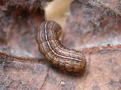 Full-grown larva (same as above). Photographed at Lowdham, March 2023. |