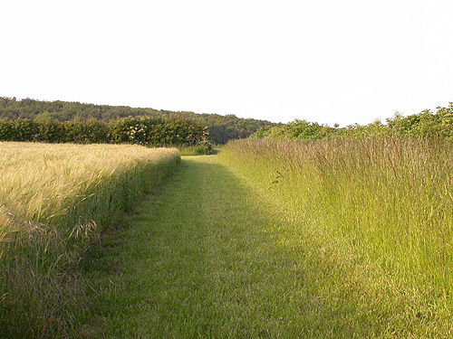 alongside the old hedge and The Beck. A section of the six metre wide strip helps the fragile Water Vole population here, providing protection from spray-drift and mechanical disturbance. It has also allowed the gradual regeneration of many former hedgerow plants and provided increasing cover for birds, insects and mammals since. These strips also provide safe migratory corridors, along which wildlife can pass to allow the colonisation and recolonisation of other suitable areas. The grass strips are cut frequently during the Spring and Summer months, with half mown and kept short, whilst the other half is cut at the end of the Summer and used as a hay crop. All the strips are linked (with gates being horse friendly) and amount to nearly three miles of grassland/hedgerow habitat, accessible to the public. |