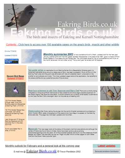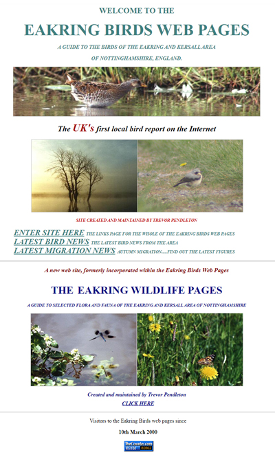 | www.eakringbirds.co.uk homepage 2000 | www.eakringbirds.co.uk homepage 2002 | |