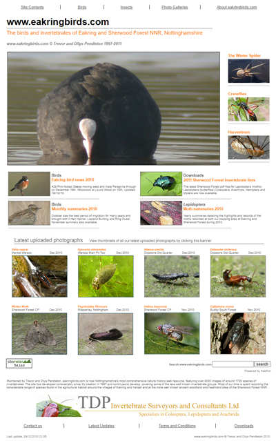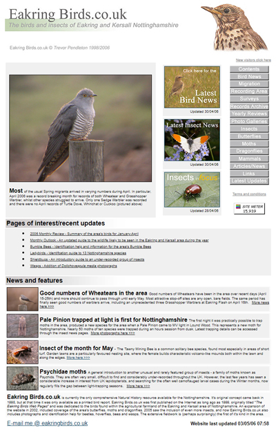 | www.eakringbirds.co.uk homepage 2006 | www.eakringbirds.com homepage 2011 | |